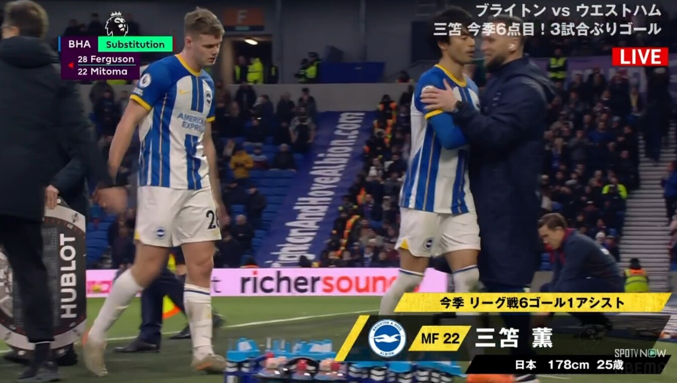 三笘薫が1か月ぶりの今季8点目&PKゲットの大活躍!指揮官不在で臨んだブライトンはウェストハムを4発粉砕