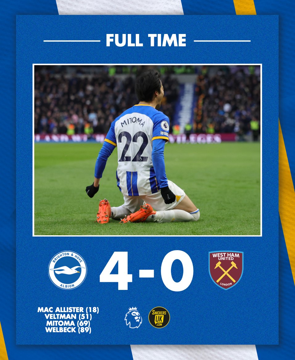 【試合結果】三笘薫がゴール & PK獲得と躍動!ブライトン4得点で圧勝!