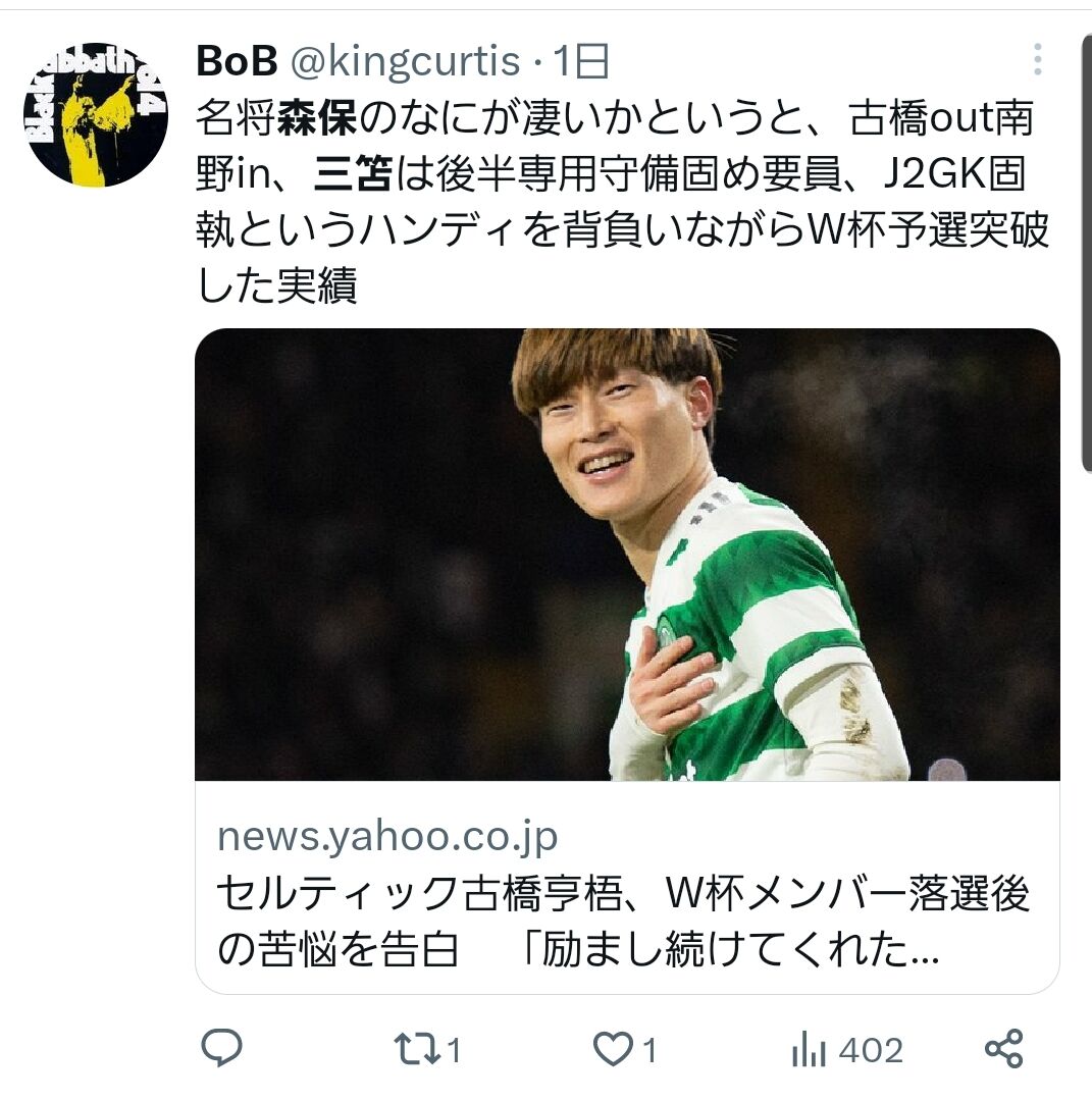 【悲報】名将森保監督を絶賛するやつwwwwwwww