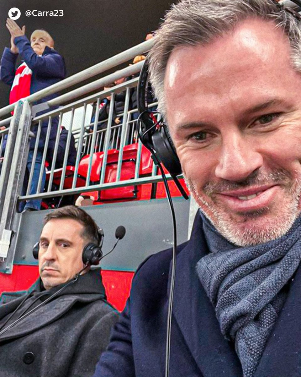 ◆悲報◆リバポ×マンU、キャラガーの隣で観戦するネビルさん賢者モード😭