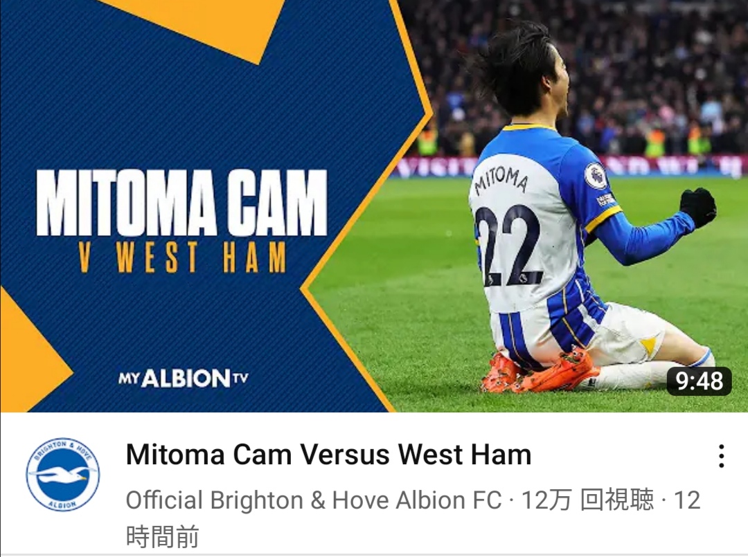 【速報】ブライトン公式、ついに三笘だけを写した「Mitoma Cam」という動画まで出し始めるwwww