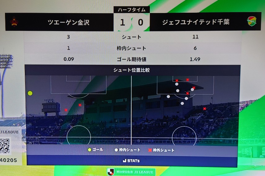 ◆悲報◆ジェフ千葉さん、金沢戦前半のxG:金沢0.09千葉1.49…なおスコアは金沢1-0千葉😭