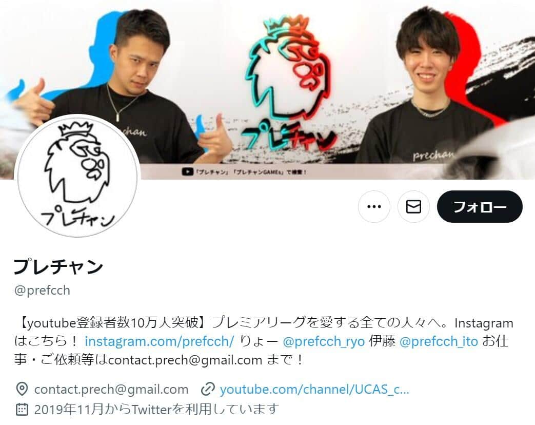プレチャンは、りょーさんと伊藤さんによるサッカー情報チャンネルだ。「プレミアリーグを愛する全ての人々へ」として、イングランド・プレミアリーグに関する情報を配信している。チャンネル登録者数は17日現在10.9万人で、ABEMAとのYouTubeコラボ企画動画「プレミアリーグドラフト会議」も配信している。