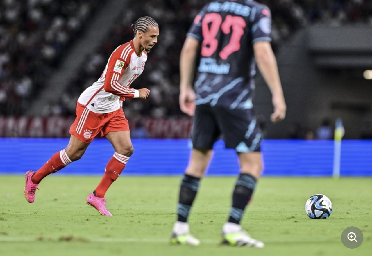 「スピードと変化が凄すぎ」バイエルンMFサネの国立競技場のバー直撃FKに「古巣相手にエグいFK」「レベルちゃうわ」と絶賛の声! シティの壁の動きも話題に