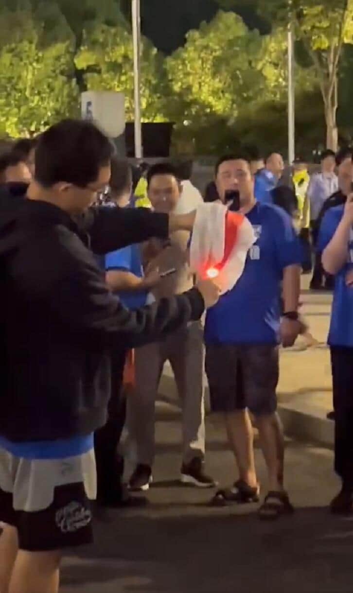 FIFA規定違反!? 日本の国旗を燃やす中国のサッカーファンに物議!