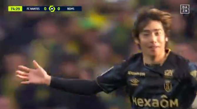 その後も基本的にはナントが主導権を握って攻撃に出る時間が続いていたものの、75分にスタッド・ランスが一瞬の隙を突く。直前の73分からピッチに送り出されたモハメド・ダラミーが左サイドからのクロスボールを入れるも、ここは相手にクリアされる。だが、クリアボールを拾ったダラミーがドリブルで深いエリアに侵入すると、マイナスへの折り返しに伊東が反応。左足ダイレクトでゴールに流し込んだ。伊東の開幕節マルセイユ戦以来となる今季2点目は、スタッド・ランスにとって均衡を破る貴重な一撃に。アウェイチームが先手を取った。