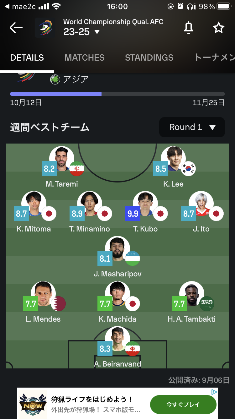 ◆W杯予選◆アジア3次予選1節の採点サイトベスト11、2列目日本独占!三笘・南野・久保・伊東…最終ライン町野も選出