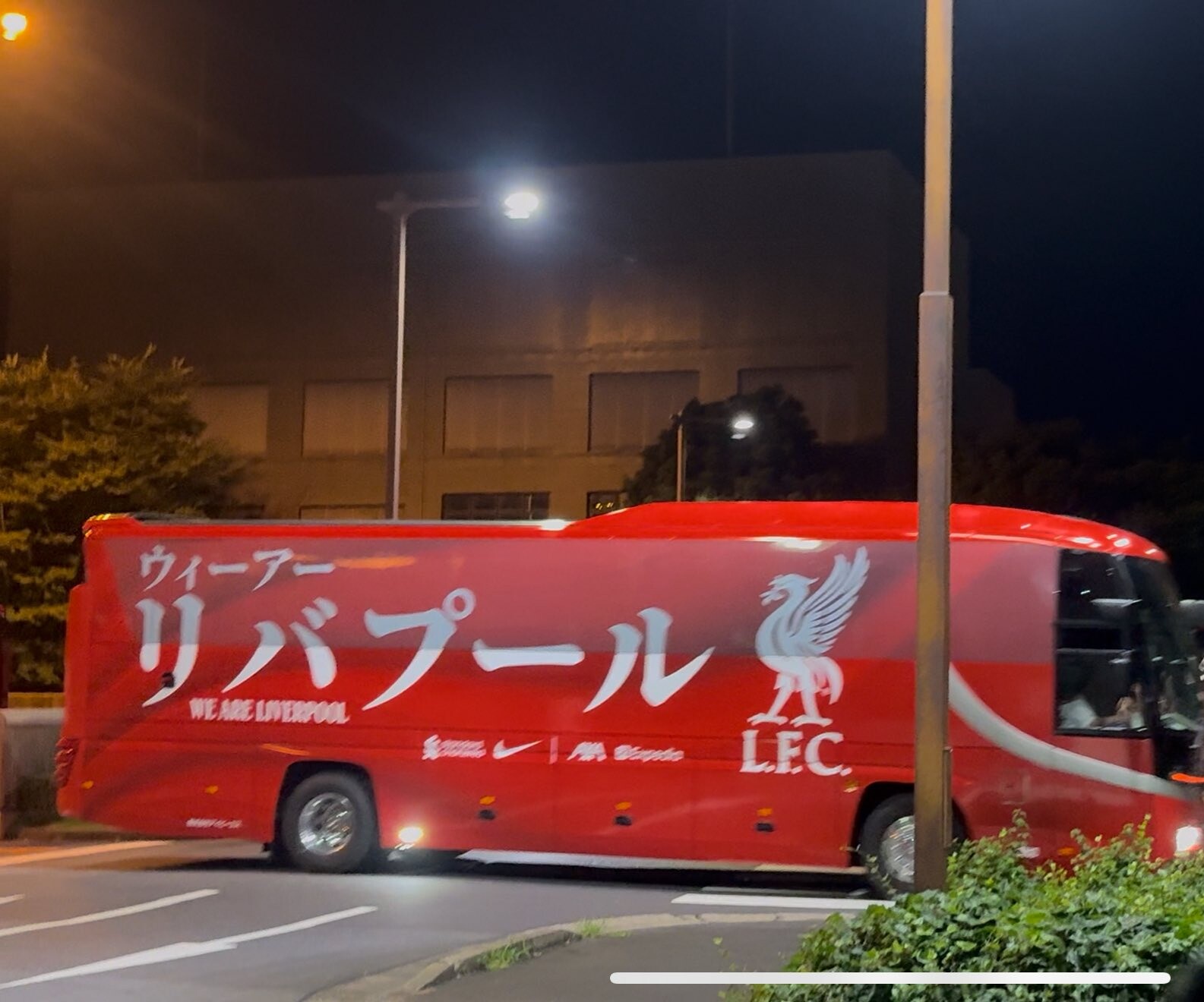 ◆画像◆来日したリバプールのチームバス、チーム名他をカタカナで書いた結果www