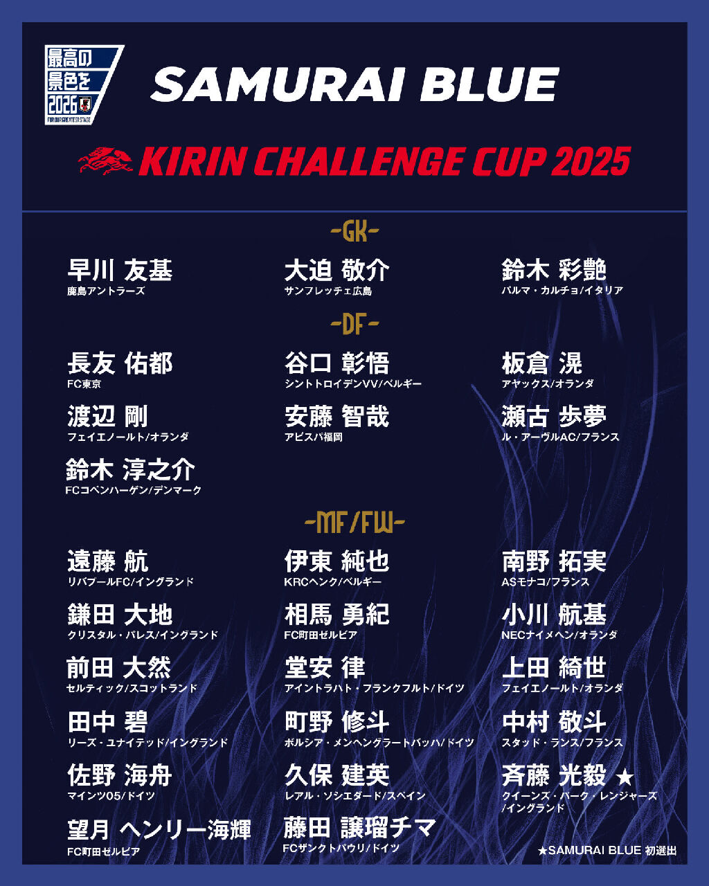 日本代表メンバー発表!! 注目ブラジル戦に三笘薫の招集見送り!