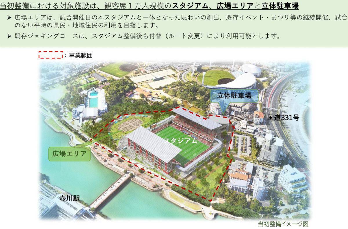 サッカーJ3・FC琉球が待ち望んできたJリーグ規格のサッカー専用スタジアム建設計画が、いよいよ本格始動しました。新たなスタジアムは那覇市の奥武山公園内に整備される予定で、2031年度の供用開始を目指し、県と市が連携して事業を推進しています。