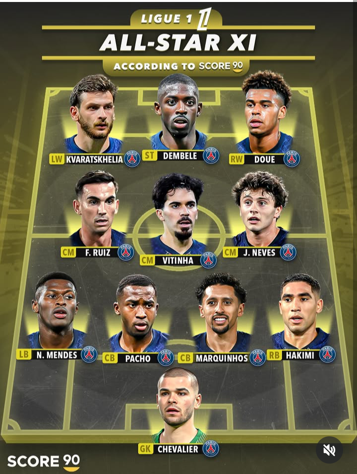 そして、フランス・リーグアンは、2025年のバロンドールを受賞したFWウスマヌ・デンベレをはじめとして、パリ・サンジェルマンの選手たちのみでオールスターイレブンが構成されていた。