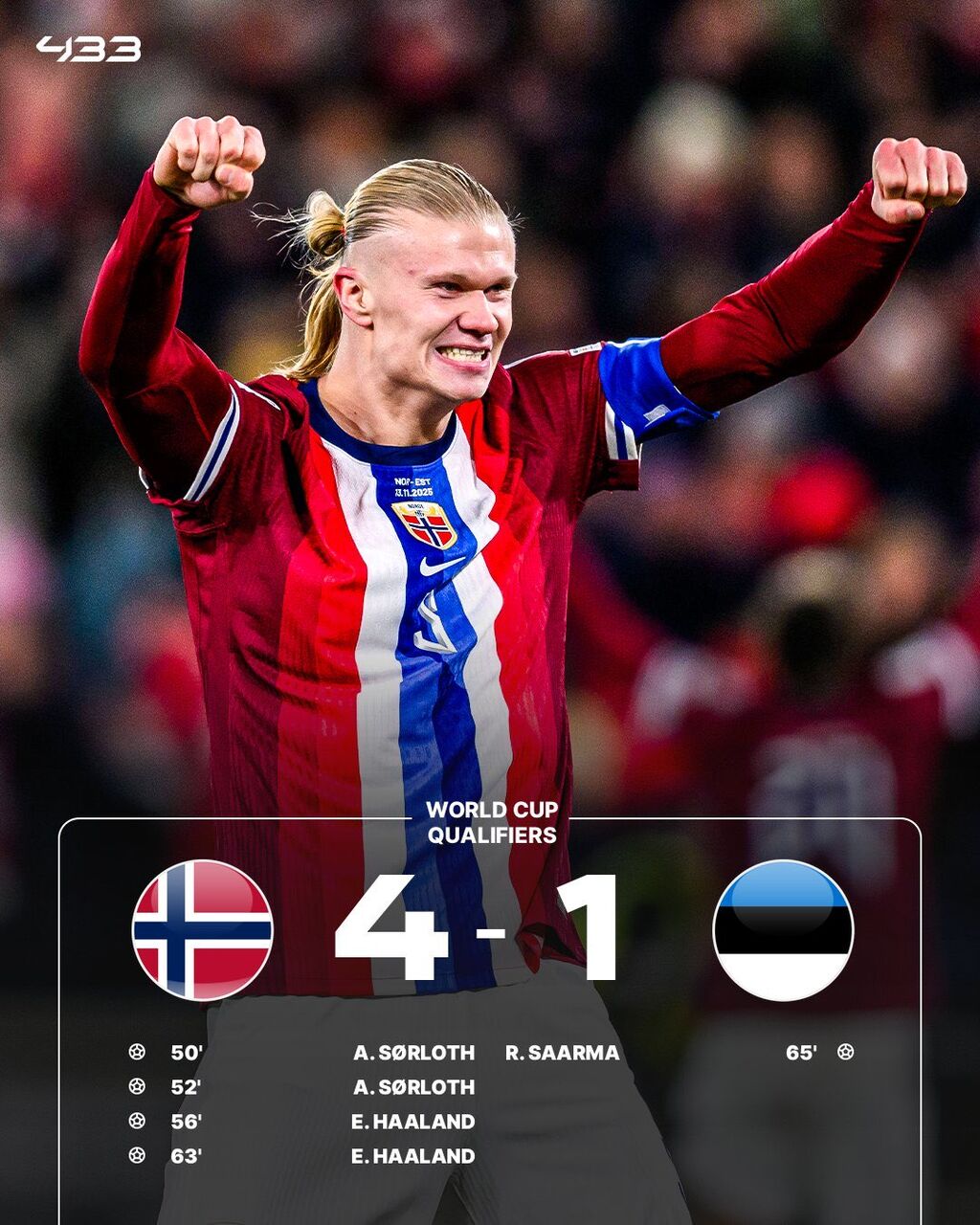 <W杯欧州予選:ノルウェー4-1エストニア>◇13日(日本時間14日)◇I組◇オスロ(ノルウェー)