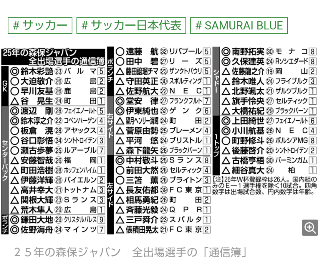 【画像】森保ジャパン、2025年の通信簿がこちらwwwwwww