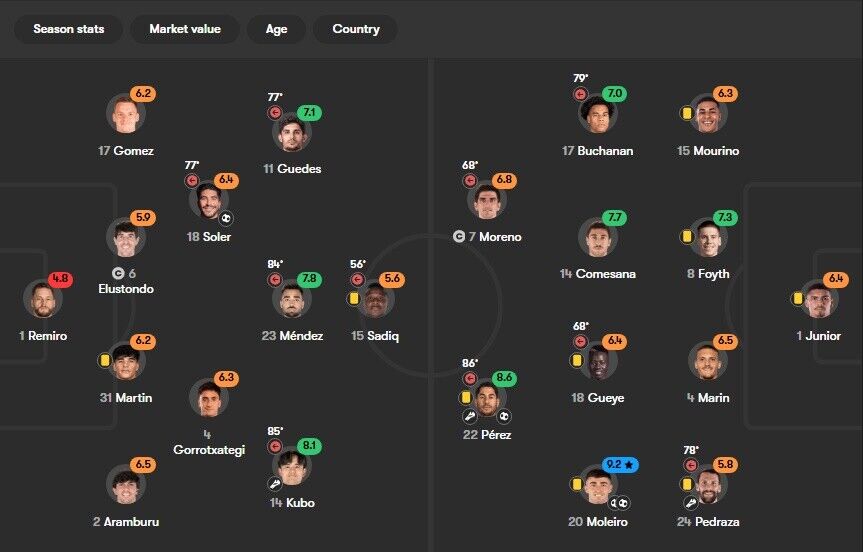 【朗報】色々言われる久保タケは一応チーム最高点なんだ👦