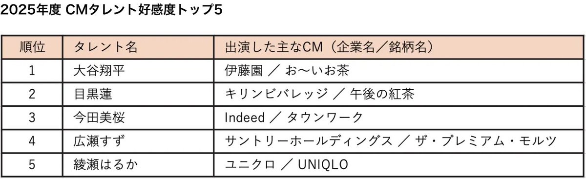 CMタレント好感度 2025年度1位は大谷翔平 現役アスリートとして歴代初 | オリコンニュース(ORICON NEWS)
