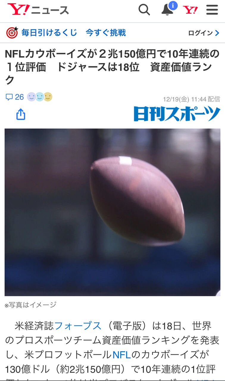NFLカウボーイズが2兆150億円で10年連続の1位評価 ドジャースは18位 資産価値ランク