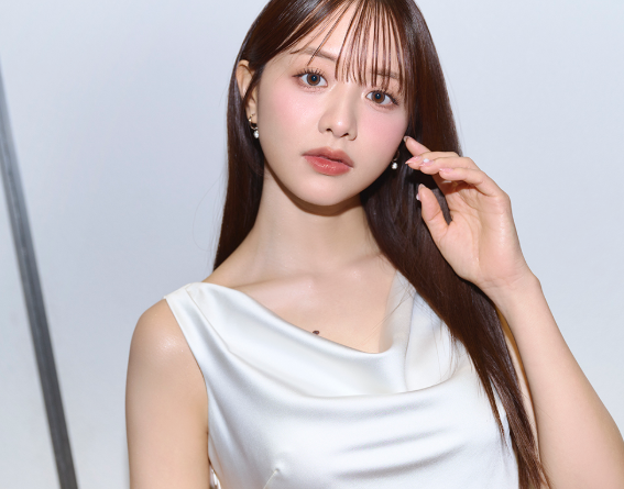 一方の森さんは、上半身に繊細なレースがあしらわれた真っ白なロングドレスを着用。ウェーブのかかった黒髪と穏やかな微笑みで、エレガントな空気をまとっています。