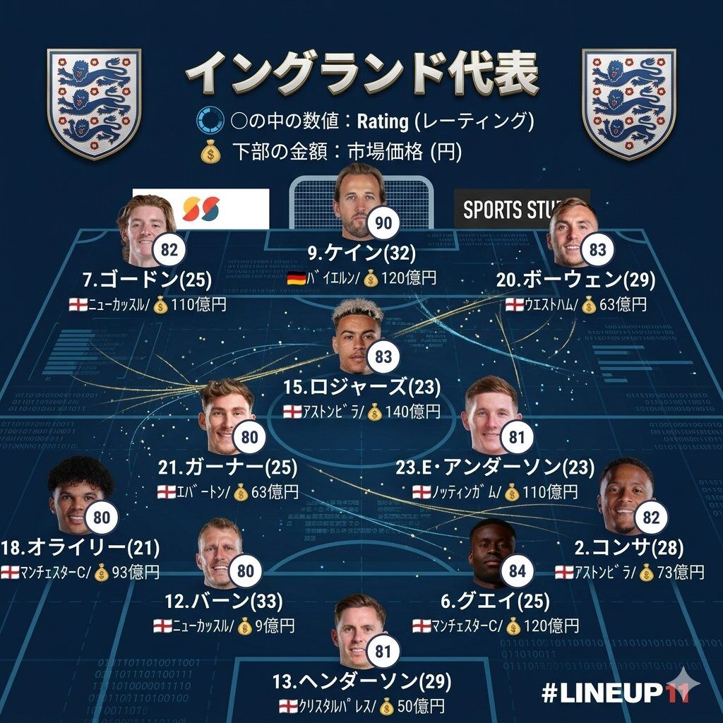 【悲報】イングランド代表のスタメン…ケインしかサッカーにわかは知らない説wwwwwww